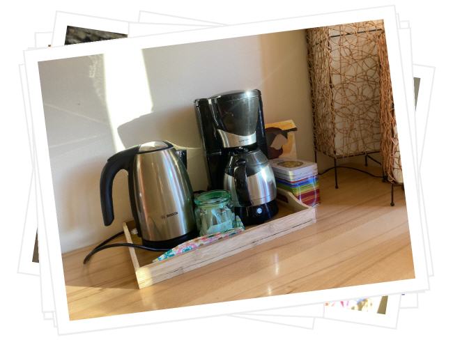 Vor dem Zimmer steht der separate Kühlschrank für unsere Gäste sowie eine Microwelle.